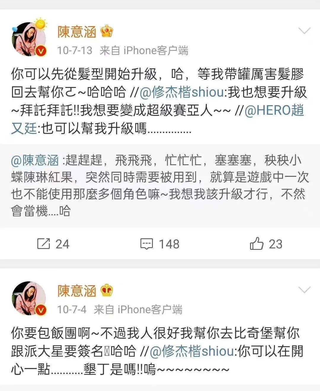 倒不是给她所谓「洗白」,其实他俩在修杰楷没有和贾静雯结婚时,能见到的互动就很多。
