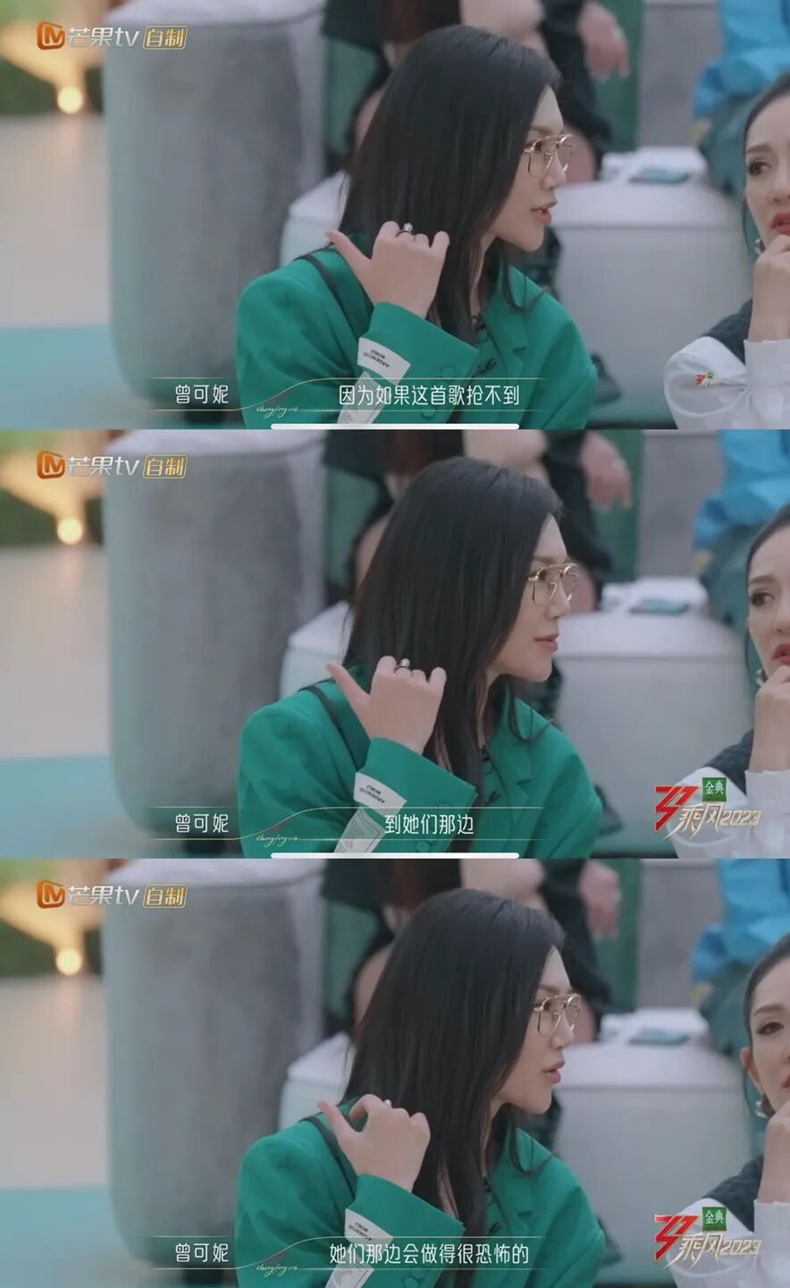 印象很深刻的是,选歌的时候,曾可妮献计献策给队长谢娜,大概意思是,这首歌我们要拿,即便我们唱不了,但是如果给强队选到,她们会弄得很「恐怖」。