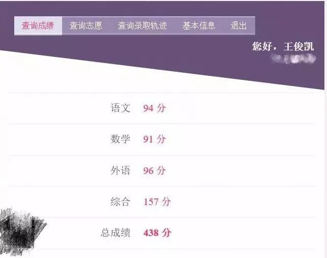 九月份就要成为大二学长的王俊凯,去年高考前通过两个月的复习时间,考出了总分438分的不错成绩,不仅超过重庆艺考分数线快100分,而且还过了文科二本分数线