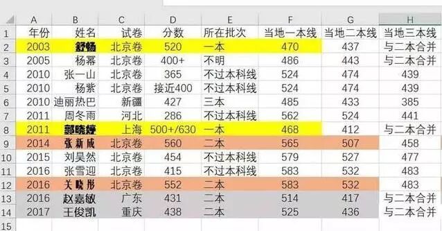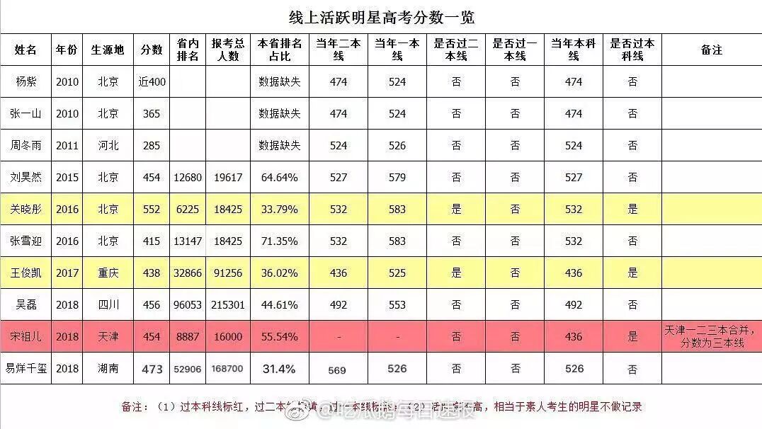 每一年明星考生们总免不了被网友拿来相互比较,有比较空闲的网友就总结了历年来明星高考生们的分数排名比例排行榜