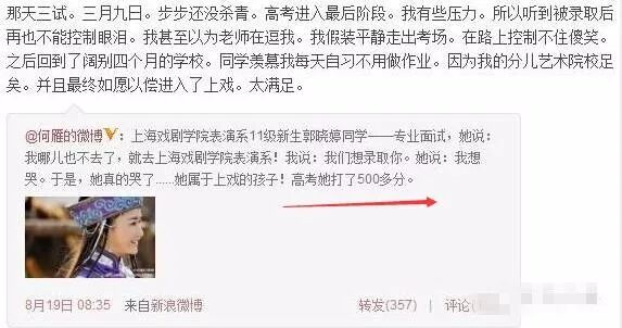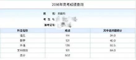 在历届明星考生中也不乏成绩比较拔尖的,比如近一两年网友们常提到的关晓彤,前年高考总分考了552分,不仅过了艺考分数线,而且还超过文科二本分数线20分,数学131分~