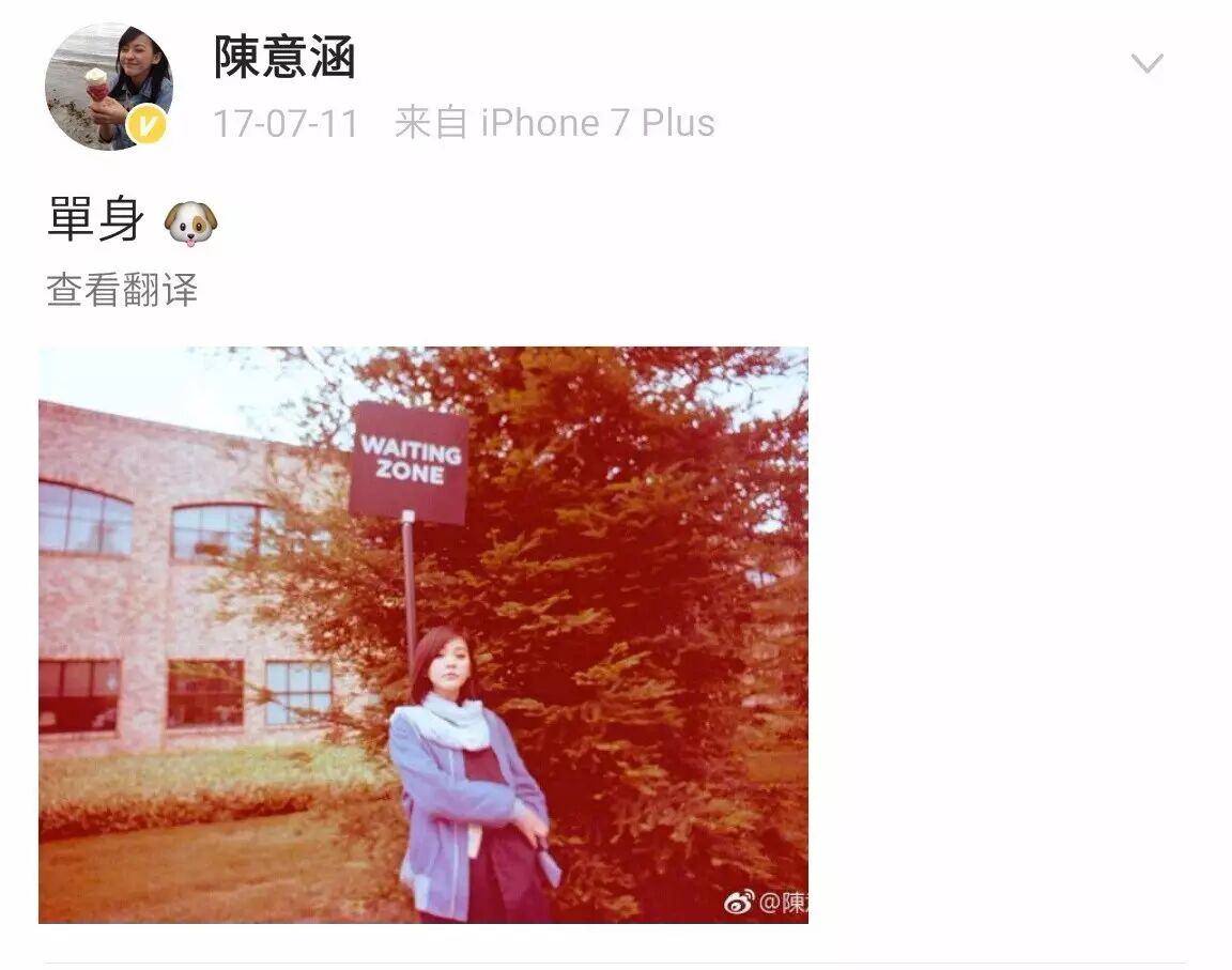 不过话说,前些日子陈意涵才在微博上高调宣布了自己是条“单身狗”。