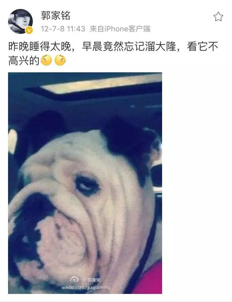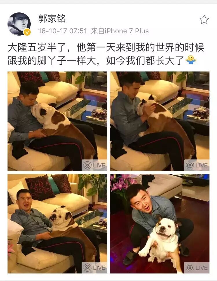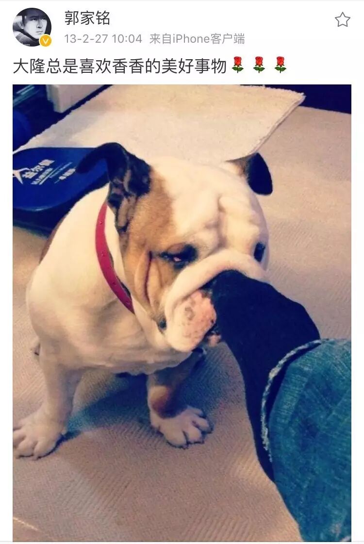 就连郭家铭的爱犬——大隆,网友挖出后被封为被史上最呆萌斗牛犬。
