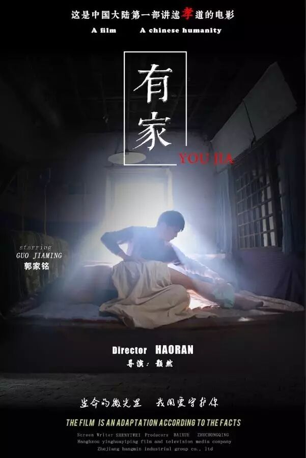在今年的第20届上海国际电影节上,郭家铭主演的孝道文化主题电影《有家》就入围了上影节电影频道最受媒体关注单元、上影节媒体大奖。