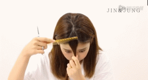 用手指拨弄一下刘海,更加自然。自己在家剪刘海的技能你get了么?