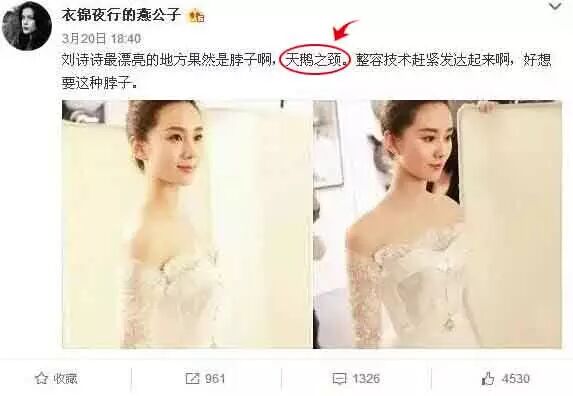 从脖子到肩膀的曲线最能突显一个女性独特的气质!女人的美丽来源于三个方面,而天鹅颈就是提升气质的秘密武器!比刘诗诗婚礼本身还受网友关注的是她的天鹅颈,而让网友对柳岩性感形象转变看法的却是柳岩婚礼那天穿的抹胸款伴娘服,礼服恰到好处的露出了她白皙优美的脖子,就算处在话题中心,却也让各路网友看到了柳岩不同以往性感形象外的优雅气质!