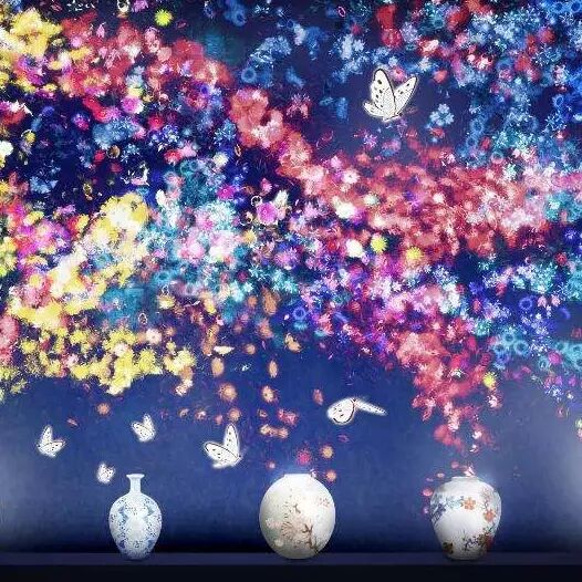 小哇对“花花世界,众生之相”有着不一样的思考,因此在展览中,他特别准备了一个房间,在这个房间里,花花世界,万千色彩,如光影流转,让人置身其中,忘记今夕何夕。