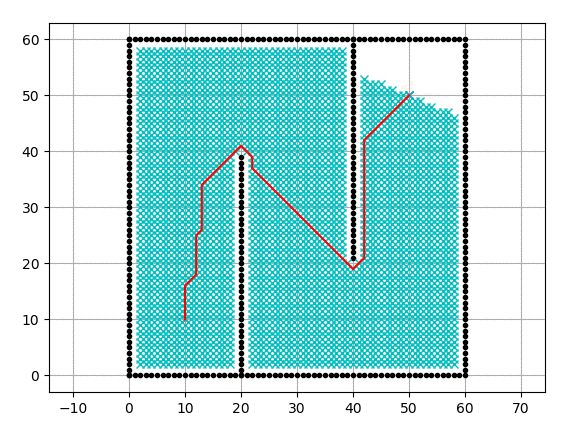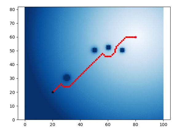 下面是使用势场算法进行基于二维网格的路径规划。