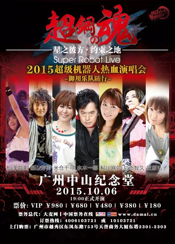 由日本动画歌帝王,钢之魂灵魂级大哥水木一郎亲自带领六位日本殿堂级动漫歌手米仓千寻、福山芳树、笠原弘子、松泽由美、鮎川麻弥、川添智久将在广州中山纪念堂为大家带来一场热血澎湃的演唱会。