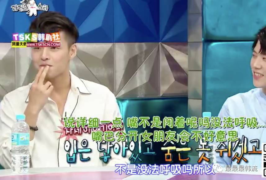 画个重点:姜河那在节目中分享了自己尴尬(搞笑)的kiss经历。