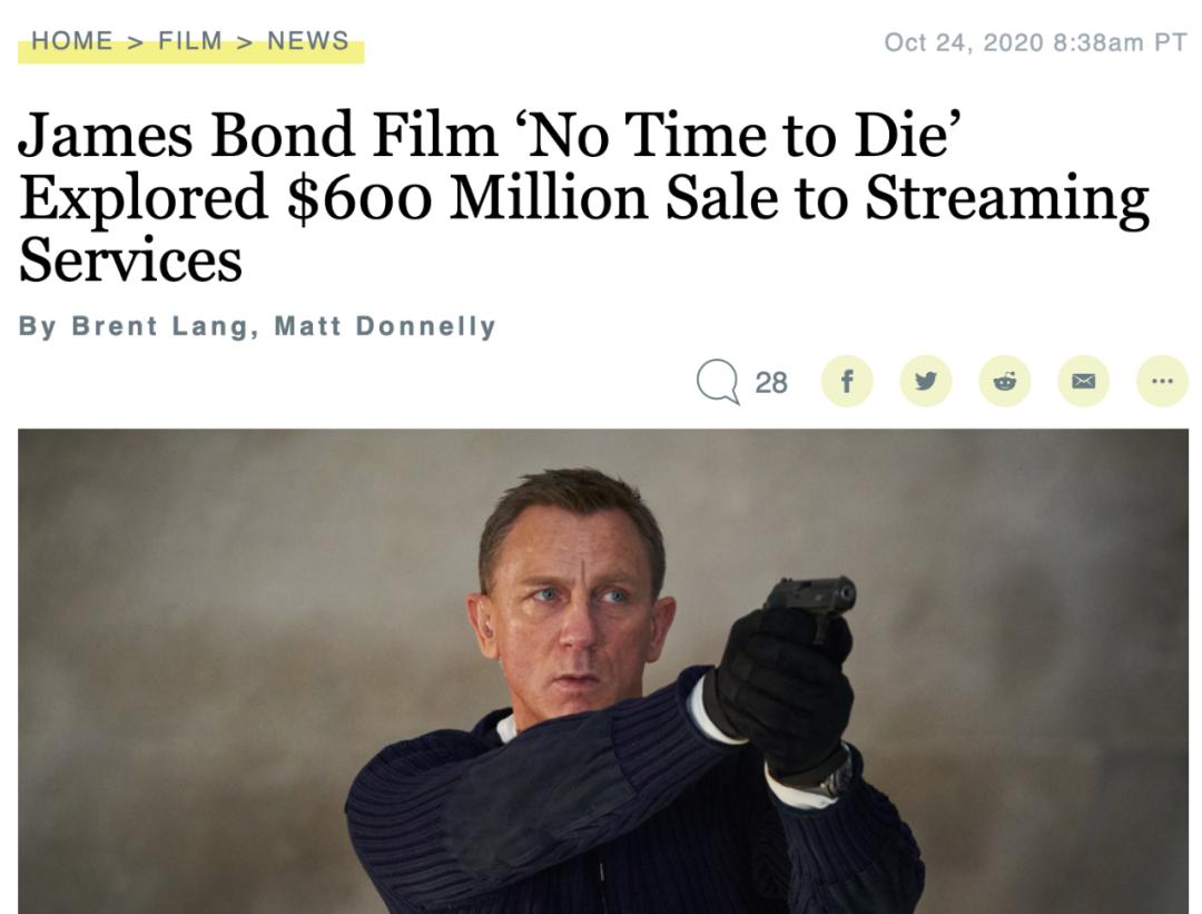 《王牌特工3》计划在2021年上映,但世界现在这个样子,还真说不准。第25部007电影《007:无暇赴死》原定于今年4月份上映,后来推迟到11月,最新消息又说,也可能放在流媒体上映,让保持社交距离的人们在家观看。