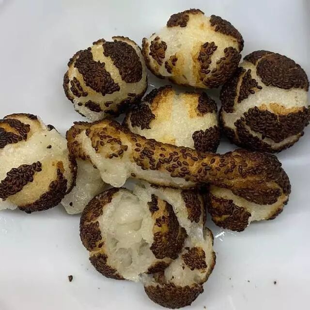 话说麻团是什么东西?我这边有一种叫麻圆的小吃,看起来和千玺晒的蛮像的,外面是芝麻里面是豆沙馅,圆圆的球状,也是油炸着吃,我还挺喜欢的,不过像千玺炸出来的这种,对不起您就留着自己品尝吧……