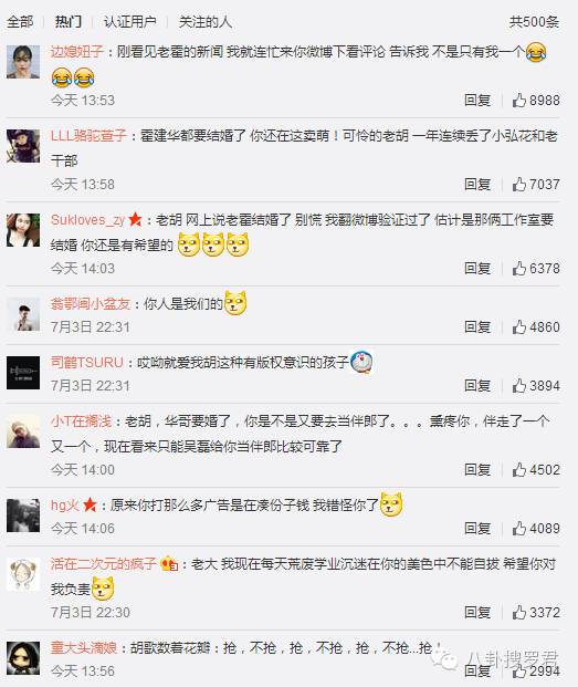 @“老胡,华哥要婚了,你是不是又要去当伴郎了……熏疼你,伴走了一个又一个,现在看来只能吴磊给你当伴郎比较可靠了。”