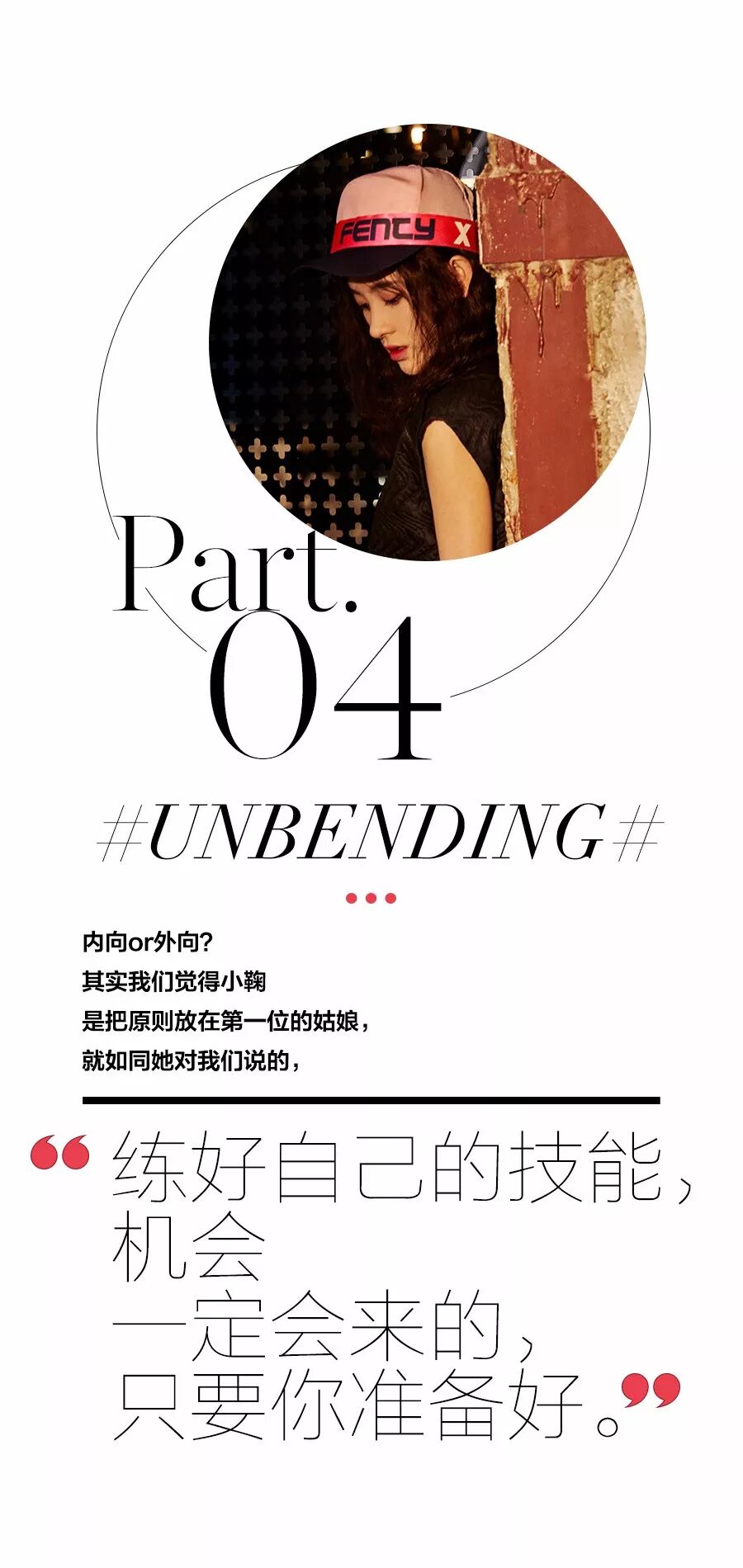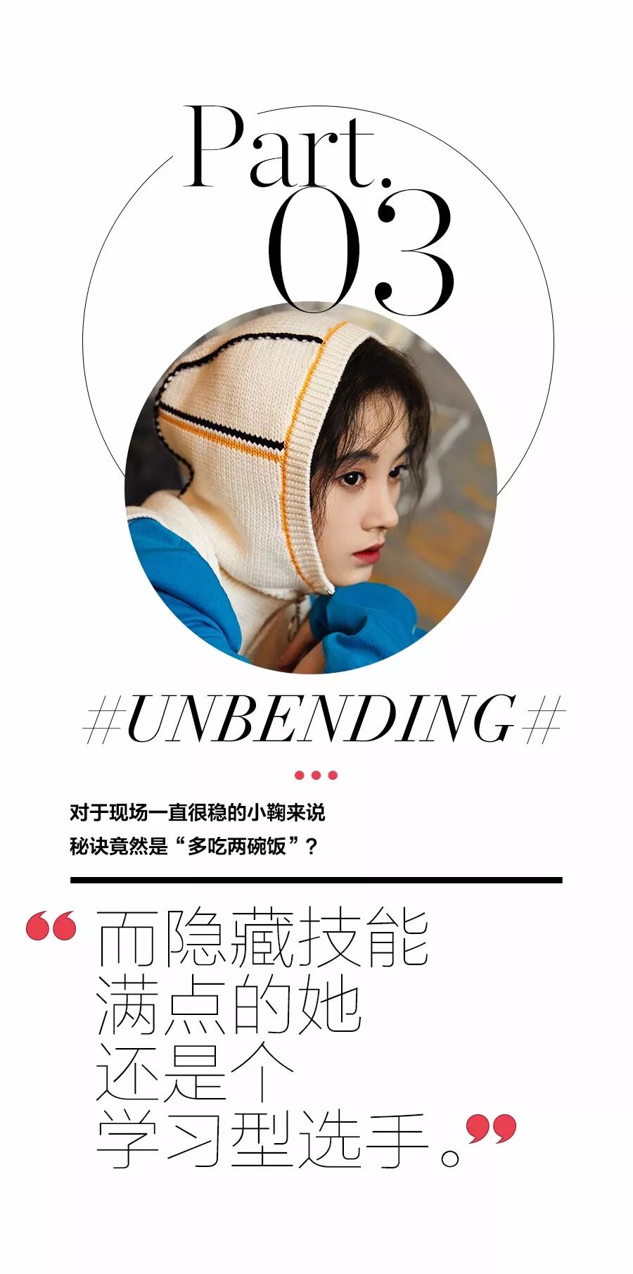鞠婧祎:要知道自己想要什么,不想要什么。我是一个很有原则的人,什么事情该做什么事情不该做分得很清,我不会做那种不该做的事情。练好自己的技能,机会一定会来的,只要你准备好。