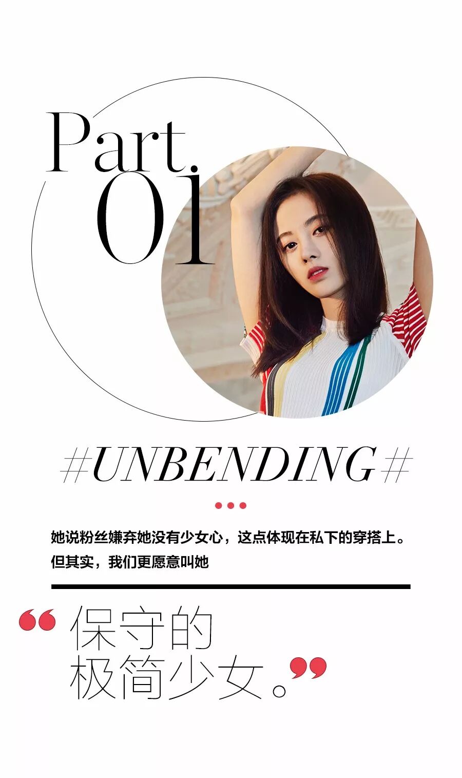 鞠婧祎:平时的我就是卫衣,我的粉丝还嫌弃我怎么没有少女心,永远都是卫衣牛仔裤。我如果自己出去玩的话,会穿得让自己显得更小,所以最真诚的建议就是高腰的,简洁干练的。我唯一少女心的是去国外的时候,我会穿吊带裙,因为我在国内不太好意思穿,到国外大家好像都比较清凉,我就好意思穿了。