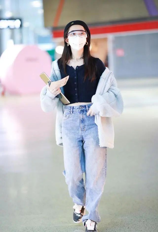 蒋梦婕的皮肤是出了名的好,十分白皙,所以格外适合穿图上这种短衬衫,状似无意的露出一点腰部和肩颈部份的皮肤,在深色的短衬衫衬托下,这样的小部分皮肤显得更加白嫩也给整体添了分美丽易碎的气质。身上的直筒牛仔裤和抓绒外套,在保暖的前提下,让整个人的气质统一,稳稳地规划在休闲风上。