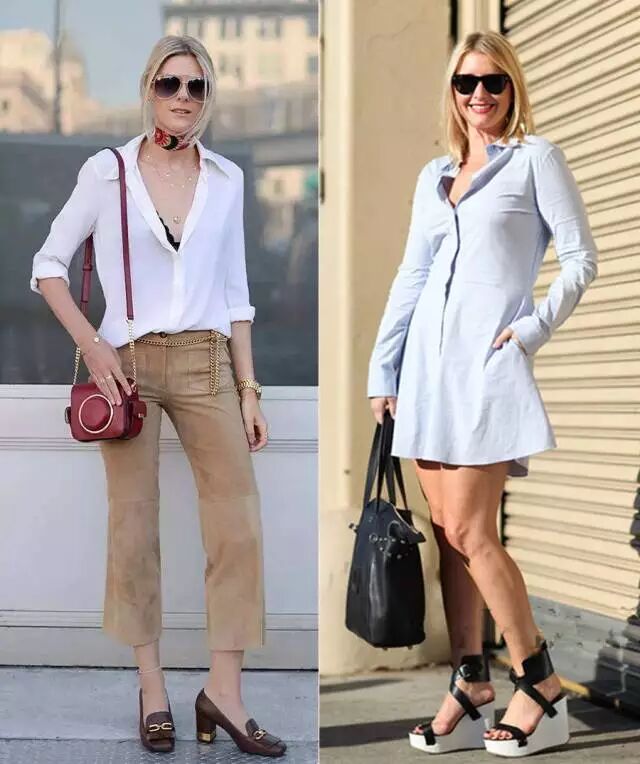 更适合:普通的版的衬衫加条阔腿裤,干练简单又不拖泥带水。衬衫裙的选择也最好是窄版的或者收腰版的。