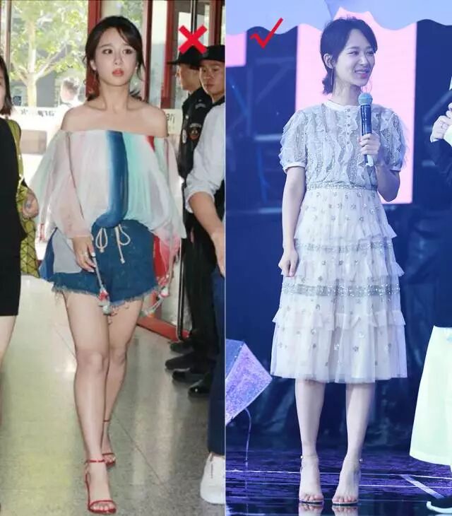 还记得之前很火的邓紫棋腿的梗吗?其实就是超短裤的错,你看换上一条中长款的裙子,完全看不出来啦~