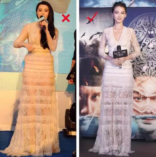 透视装很性感,若隐若现极能体现女性之曲线美。但如果你不是完美到一丝赘肉都没有还是请放弃吧!看看冰冰姐和Baby穿同一条裙子效果却相差很大哦!