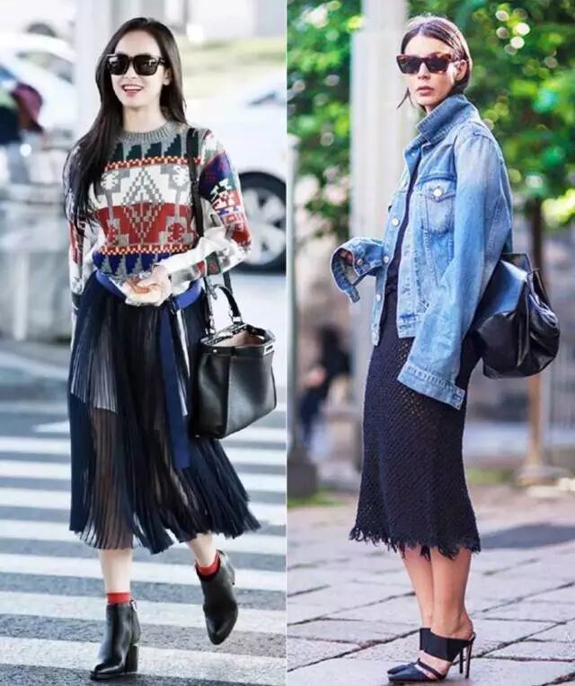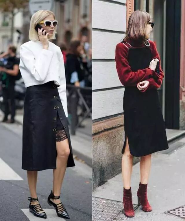 还有一切盖住小腿肚子的长裙都是超适合小粗腿们的!