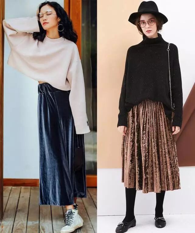 更适合:将光泽感的面料减少,并选择相对保守的款式!流行的丝绒面料可以选择一条阔腿裤或者百褶裙。上身搭配正常款。忌全身穿丝绒!