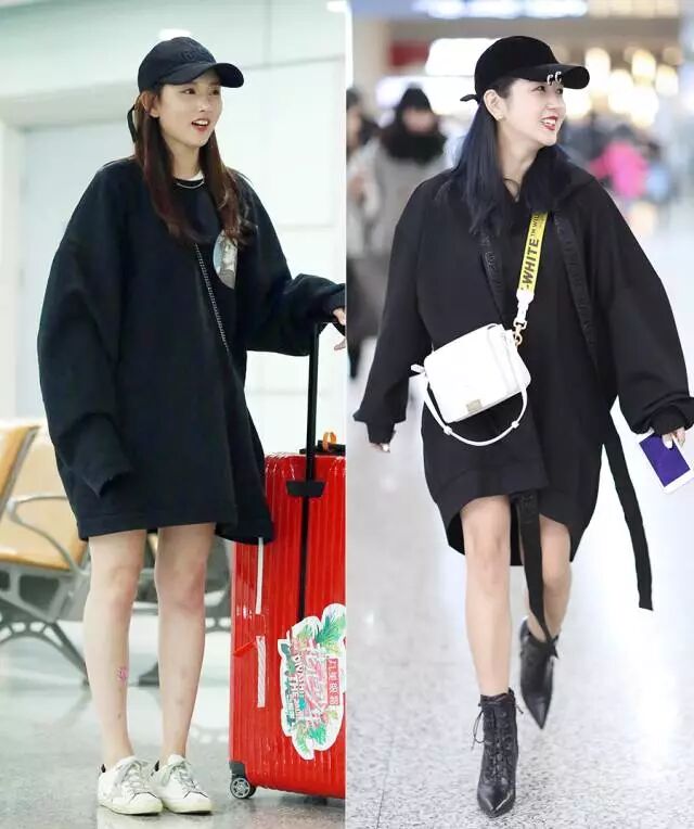 还记得前两天刚说过的长卫衣吗?明明是差不多的款式,瘦子穿出来还是瘦子,微胖的何洁穿出来就有点像孕妇,真是太不公平啦!