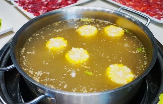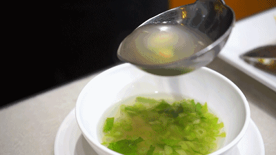 黄豆、芹菜和炒蒜蓉的香味充分融进骨汤里
