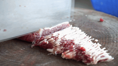 顶真手打的牛肉丸吃起来爽脆Q弹