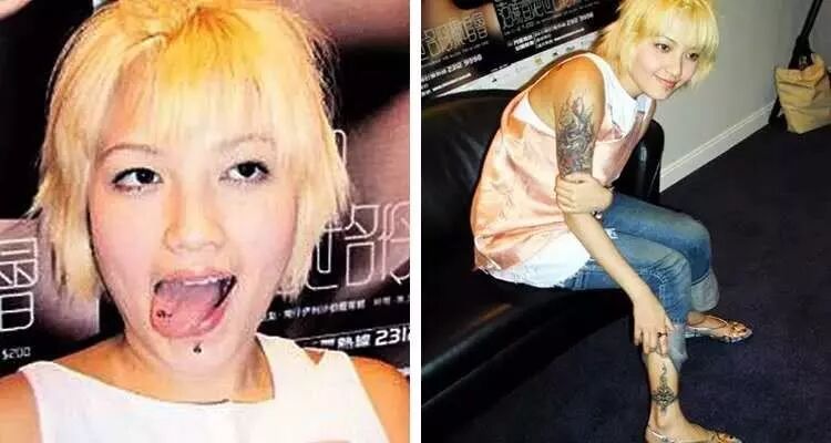 于是在最红的时候,范晓萱剪了寸头、打唇环、舌环,忍着痛纹了个花臂,在肚脐上穿脐环,在打扮上越来越“朋克”,成了不折不扣的“小魔女”。