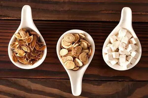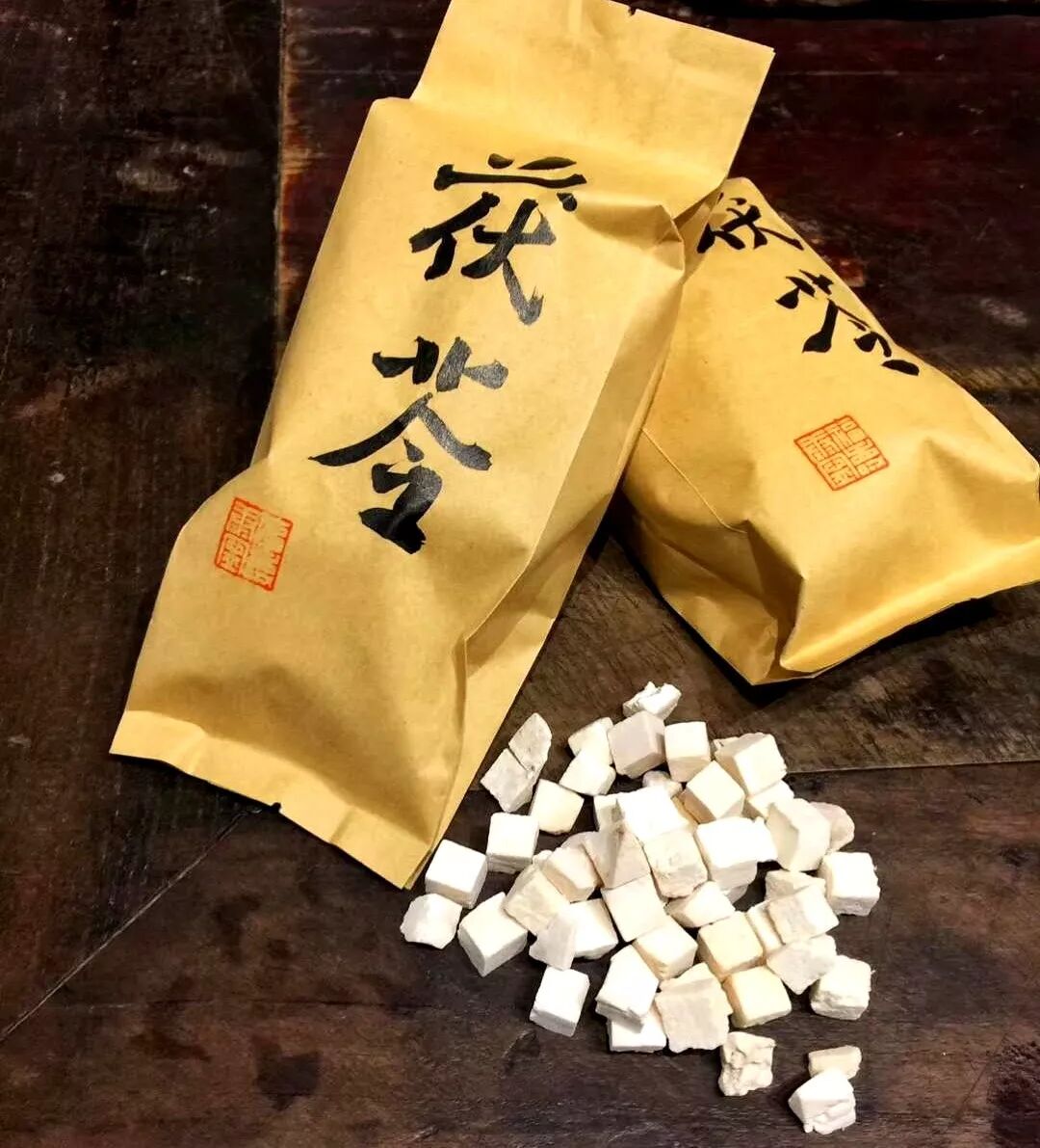 白茯苓:切去赤茯苓后的白色部分,亦称茯苓,切成小方块,功能渗湿健脾。