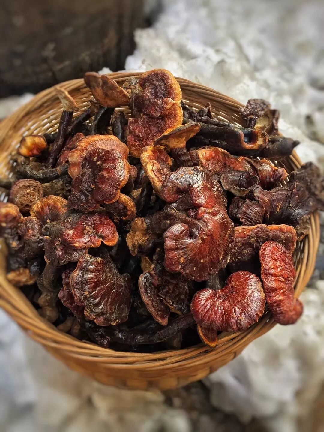 灵芝(学名:Ganoderma Lucidum Karst),外形呈伞状,菌盖肾形、半圆形或近圆形,为多孔菌科真菌灵芝的子实体。具有补气安神、止咳平喘的功效,用于眩晕不眠、心悸气短、虚劳咳喘。