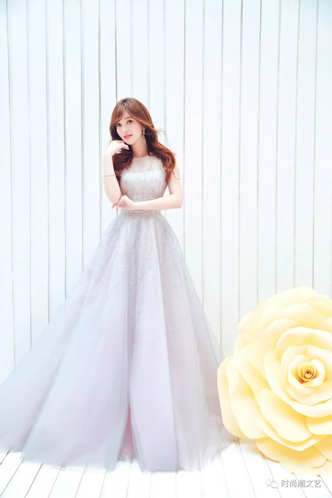 一袭粉色刺绣透视长裙搭配一头微卷秀发,皮肤白皙,仿佛是从童话中走出来的公主一样典雅。