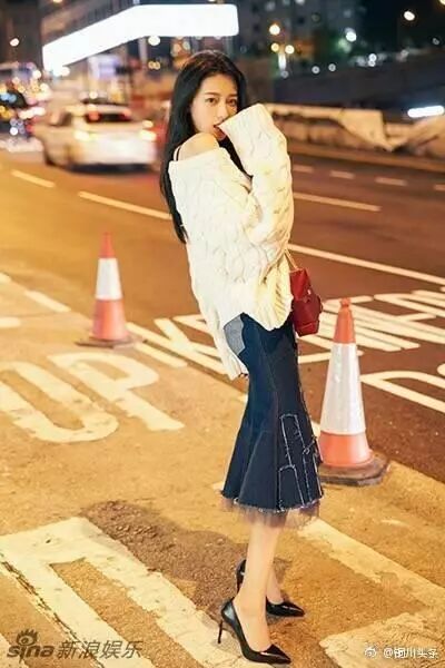 和李沁撞脸的孙怡也是身材高挑,穿衣更大胆,白色毛衣穿出了漏肩风格,搭配荷叶摆中分牛仔裤更加迷人
