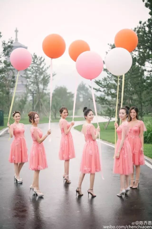 照片出来,伴娘团果然美die!而且伴娘服也是很美。