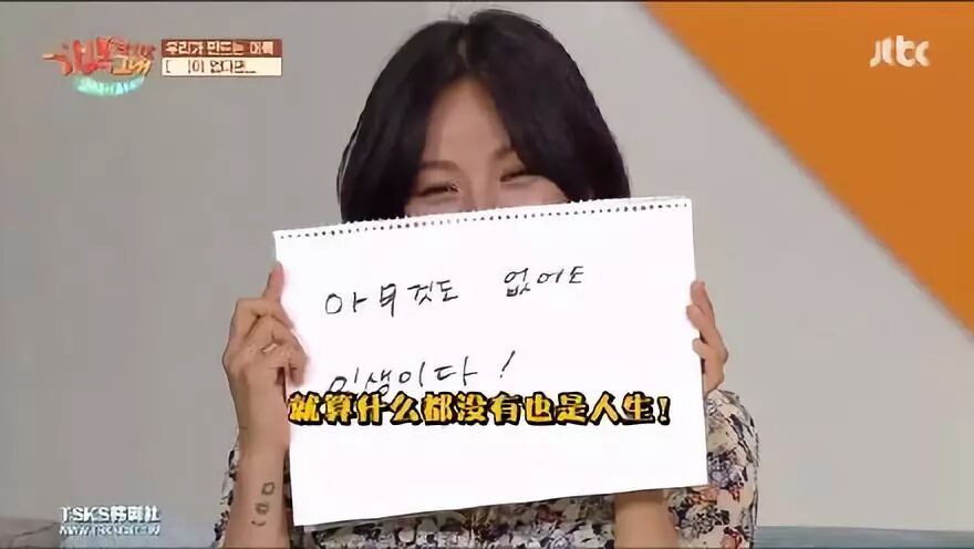 就像在《金济东的Talk To You》节目里,主持人要求大家用 “如果不能/没有____的话,就不是人生” 来造句, 孝利却写下“尽管什么都没有,也是人生。”