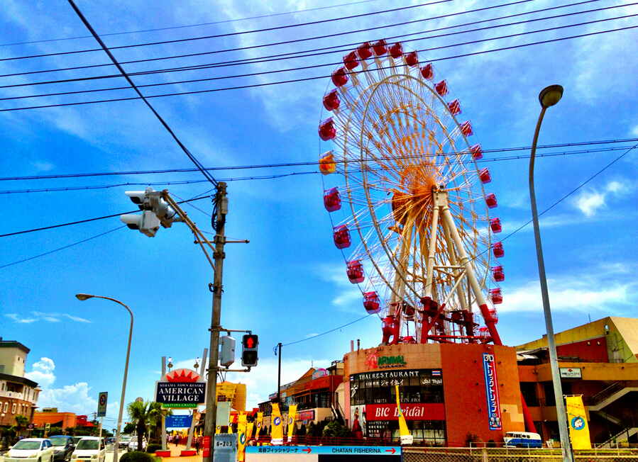 第三站:美国村(游览时间约为2小时),美国村原本是为附近的美军基地官兵及家属服务的商业区,现在已经成为了一处冲绳地区的综合文化商业区。不论建筑、娱乐餐饮设施、还是服饰商品等,随处洋溢着浓厚的美国风情。美国村内拥有以3D映像娱乐设施、电影馆、购物中心、保龄球场、美式餐厅、录音室、娱乐中心、进口杂货店等,还有一座巨大的摩天轮。
