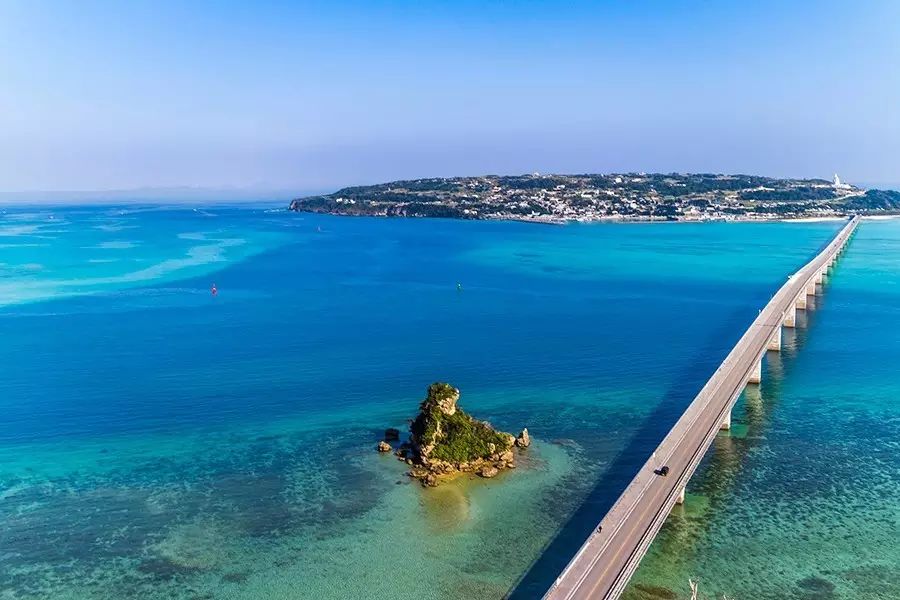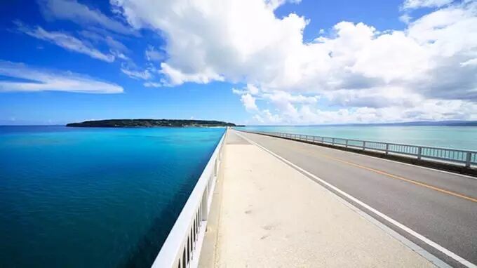 C:古宇利岛绕岛一周大约8公里,越过古宇利大桥,您一定会对出现在眼前的美景赞叹不已。宝石绿的大海,湛蓝的天空“触手可及”,仿佛它就是通往天宫之路。
