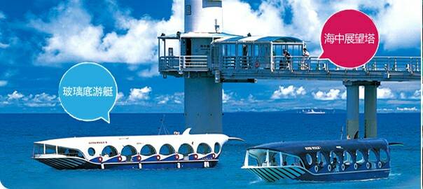 第一站:水中观光船巡游(游览时间约为1小时),世界首创的大型水中观光船,船身比较大行驶中船身平稳摇晃不大,不必担心会晕船!当船到达定点后,中央的船舱会像电梯一般往水中下降,透过船底的玻璃窗欣赏海中的热带鱼和珊瑚礁,让你大饱眼福,大开眼界。