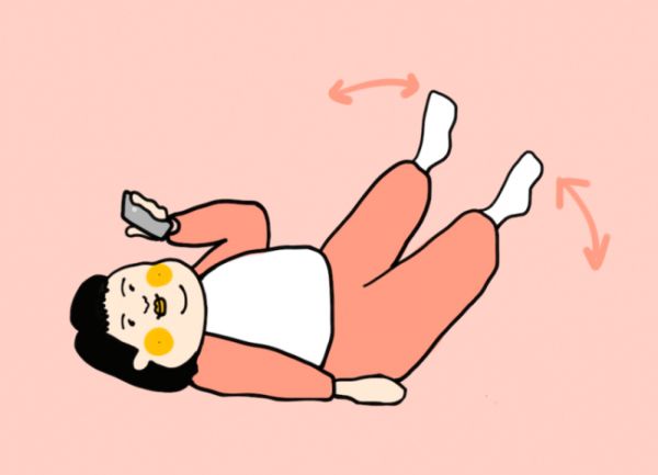 最后一个动作,我们双腿屈膝抬起,向下缓缓落下,做20次,有助于减少臀部及腿部脂肪。