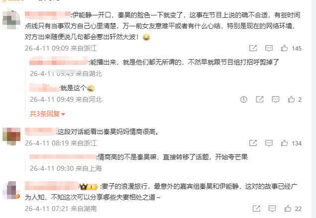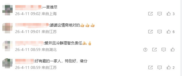 对此,网友纷纷留言,有称赞“好有趣的一家人,缘分”,也有点赞秦昊妈妈情商高,还有人表示 “情商高的不是秦昊嘛,直接转移了话题”。