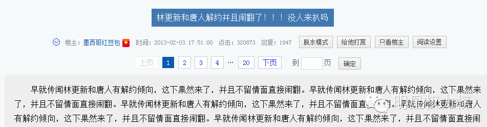 关于当时林更新和唐人的关系,天涯有非常多的八卦贴讨论。