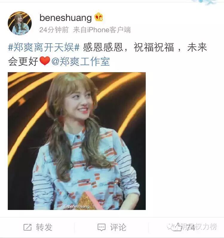 毕竟不同于打官司解约,爽妹子这次的离开属于合同到期,和平分手。