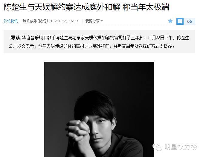 记得当时很多报道都在说陈楚生的违约金高达多少多少,并且他和天娱的官司一直持续了三年多。