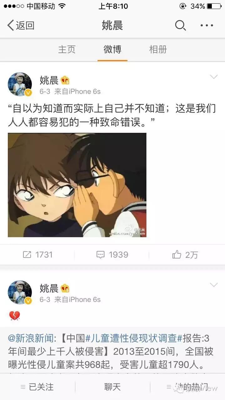 很快,姚晨的宣传总监发微博长文驳斥,说自己的艺人是很懒的,这种露脸的活动都是求着她去参加,姚晨更愿意躲在家里研究红烧肉;姚晨也发微博指出,“自以为知道而实际上自己并不知道,这是我们人人都容易犯的一种致命错误”,在评论中直接回答网友问题,说自己没那么low。