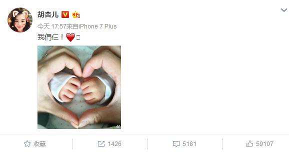 恭喜胡杏儿升级当妈妈了!