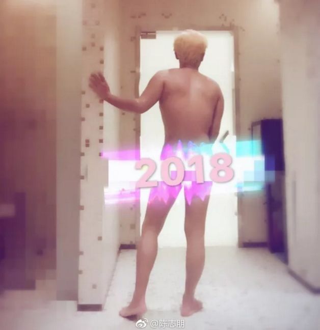 这是2018年火的第一个明星祝福,看着好像是半夜起床小解的他,在重点部位P上了2018。之前这位明星驾驭的各种透视、空挡、蕾丝、夜店风服饰饱受诟病,而这一次发博跨年,他直接连衣服都不要了。