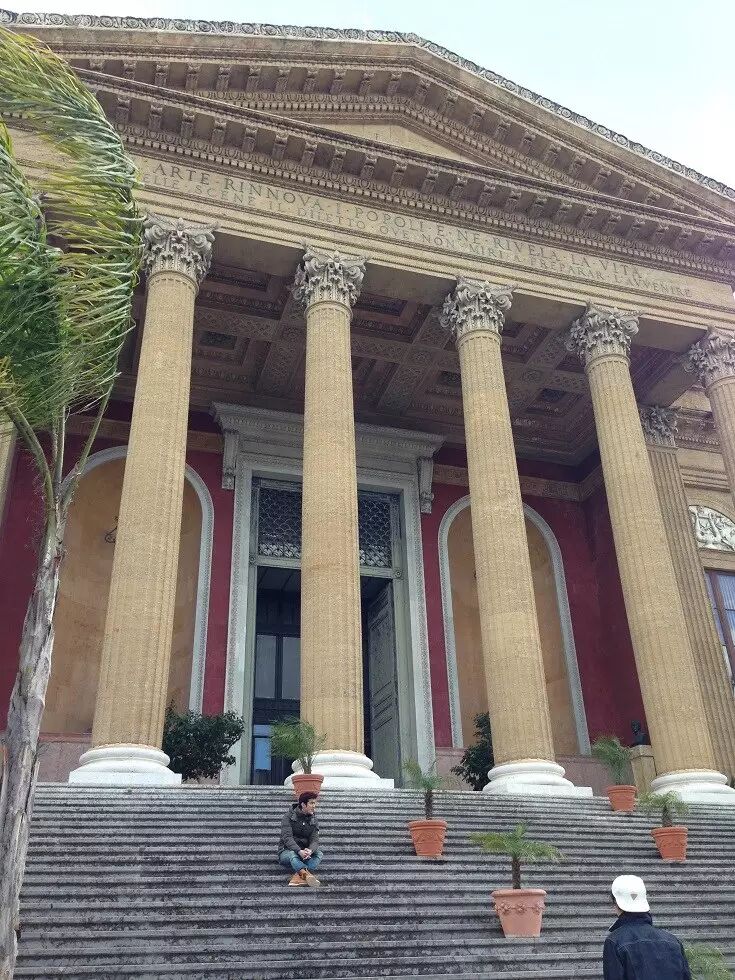 今年2月9日,我随东方电视台《花样姐姐》摄制组到访了好莱坞影片《教父3》的外景拍摄地之一:西西里岛上著名的TEATRO MASSIMO歌剧院。艾尔·帕西诺在影片中曾经坐过的包厢,我们在那儿参观流连,小坐片刻,既带着对艺术的敬畏,也是对同行的尊敬,我们为自己能有机会来到这里感到高兴。那天,不管作为同行还是游客,我们心里都有些小小的兴奋。