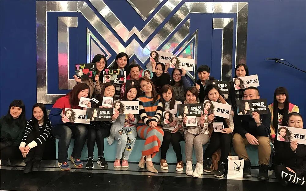 身穿毛衣长裙的她与粉丝们坐在一起,也是活力满满,亲和力爆棚。
