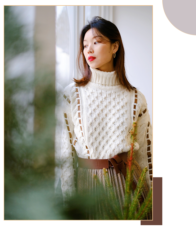 这款毛衣的织度也比较密,适中的罗纹让毛衣之间的空隙减小,穿上之后保暖的效果也会更好。除了黑白灰,我还会把绿色和大地色搭配在一起,让这个冬季的着装不再沉闷,整个人看起来也更有精神。