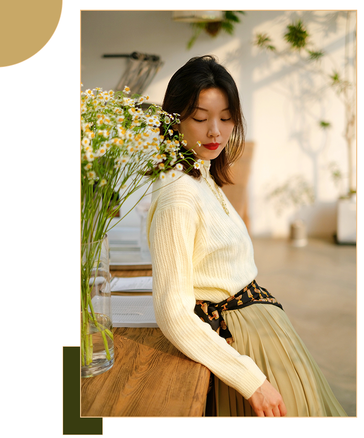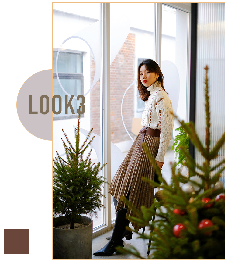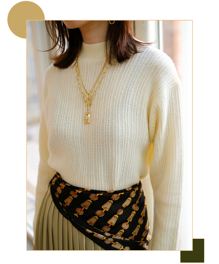 像这样一件走路带风的毛衣,我都会搭配一条面料同样立挺的百褶裙,看起来很有甜酷的风格,不会显得小家子气,作为职场装也很适合噢~